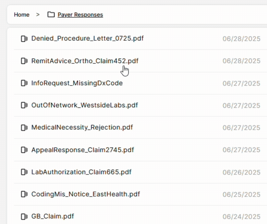 DocKnow also automates many billing-side laboratory tasks: running eligibility checks, processing EOBs and claims, supporting appeal letter generation when denials occur, and maintaining a field-level audit trail across every document interaction. Every change is logged.
